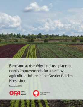 Environmental Defence and the Ontario Federation of Agriculture (OFA) have released a report called “Farmland at risk: Why land-use planning needs improvements for a healthy agricultural future in the Greater Golden Horseshoe.”