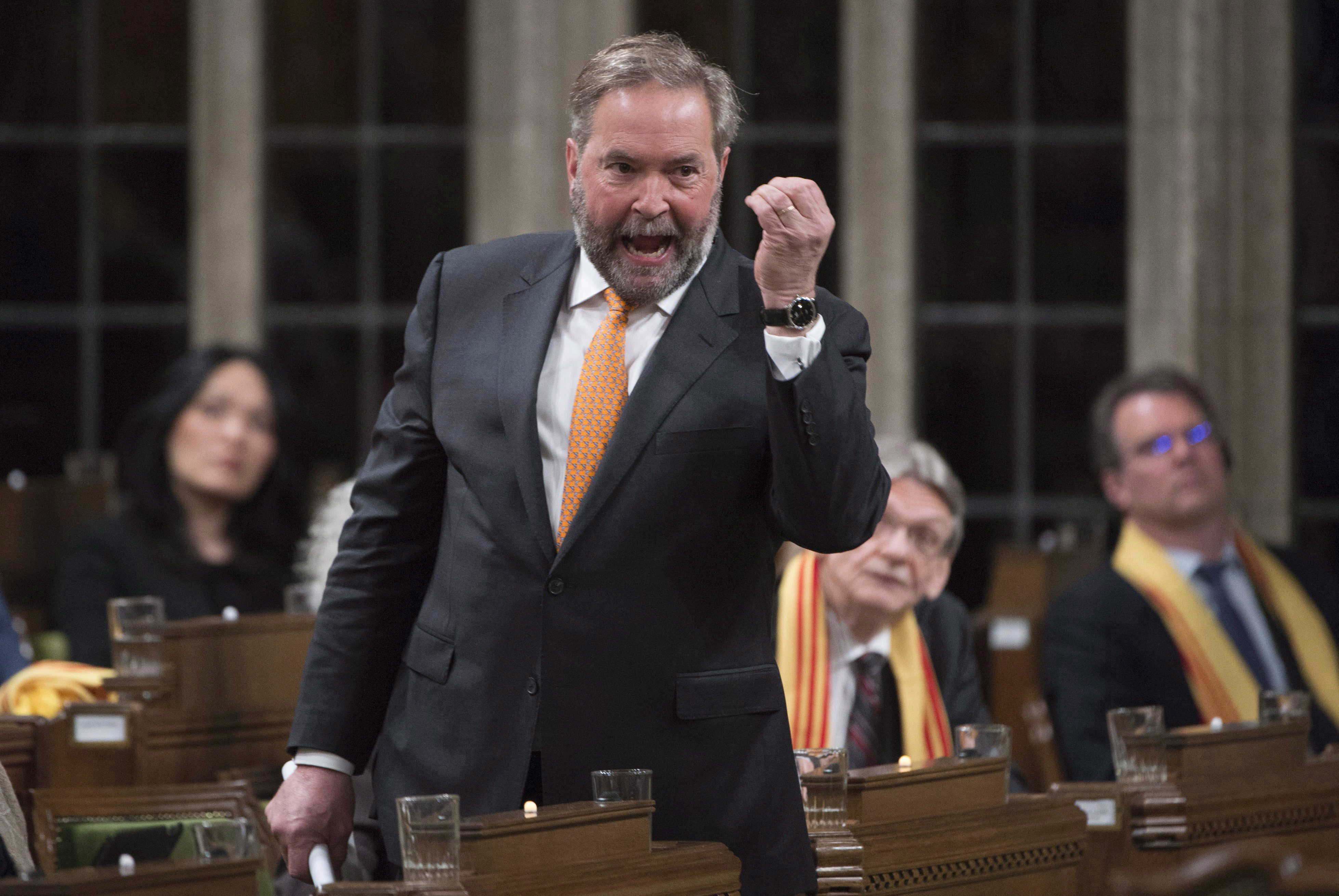 Thomas Mulcair durante el periodo de preguntas en el Parlamento de Ottawa, el lunes primero de mayo 2017. (THE CANADIAN PRESS/Adrian Wyld)