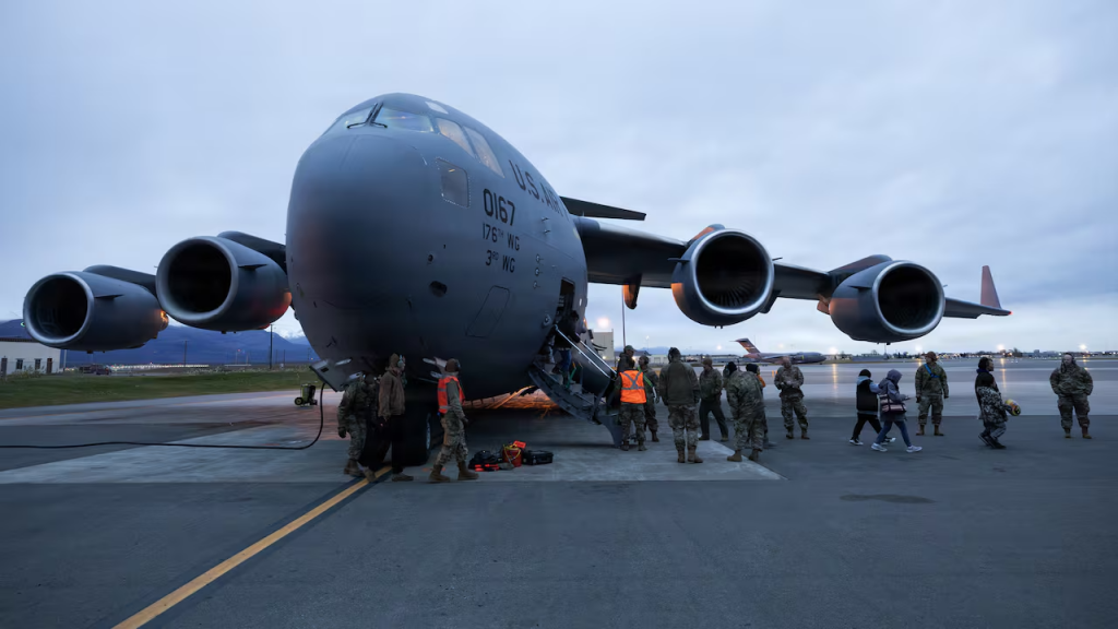 About 300 evacuees were flown to Anchorage on Wednesday, about 800 kilometres east of the battered villages, according to the state Department of Military and Veterans Affairs.