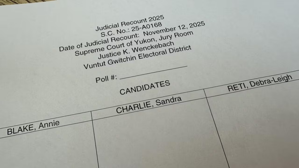 The recount was conducted in Whitehorse on Wednesday by a Yukon Supreme Court justice. It confirmed the results from Nov. 3, with Reti at 52 votes, Blake 45, and the Yukon Party’s Sandra Charlie at 34.