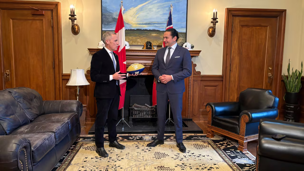 “We’re going to be talking about things like the potential route and what is the best way to get products to the coast. So a lot of tires being kicked, a lot of studying going on right now,” Kinew told reporters after his meeting with Carney.