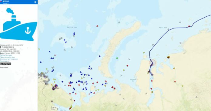 The 293-metre-long gas carrier arrived in the port of Utrenny on November 14, and a few days later set out from the ice-covered Gulf of Ob. On November 20, the tanker was on its way into the Kara Sea with the course for China.