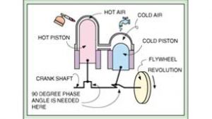 A diagram illustrating how a two-piston Stirling engine works. (American Stirling Company)