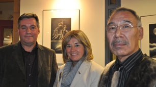 Nunavut Environment Minister Daniel Shewchuk, left, with Quebec Senator Céline Hervieux-Payette and deputy environment minister Simon Awa in Iqaluit earlier this year. Photo by Patricia Bell, CBC.