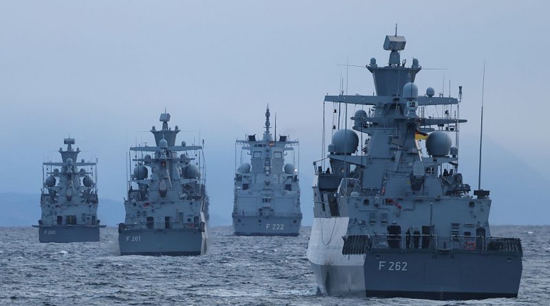 The German Navy starts its largest naval firing exercise in decades off the coast of Andøya, Norwegian Sea. Ship traffic