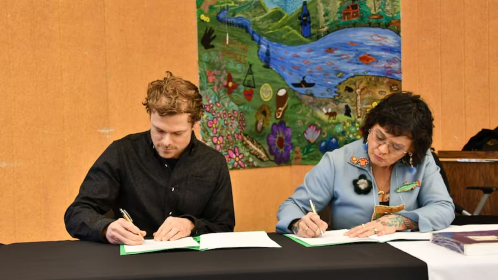 « Pendant trop longtemps, l’exploitation minière a eu lieu sur nos terres sans le respect de nos droits », a souligné la cheffe de la Première Nation, Dawna Hope, lors d’une cérémonie de signature au cours de laquelle il y a eu des chants, du tambour et des prières.