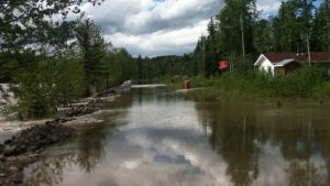 The community of Lower Post on the B.C./Yukon border was flooded by the Liard River last weekend, and some residents were taken to nearby Watson Lake, Yukon. (Leonard Linklater/CBC)